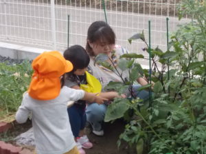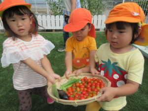 園ではネコのひたい程の畑があり、野菜作りをしています。