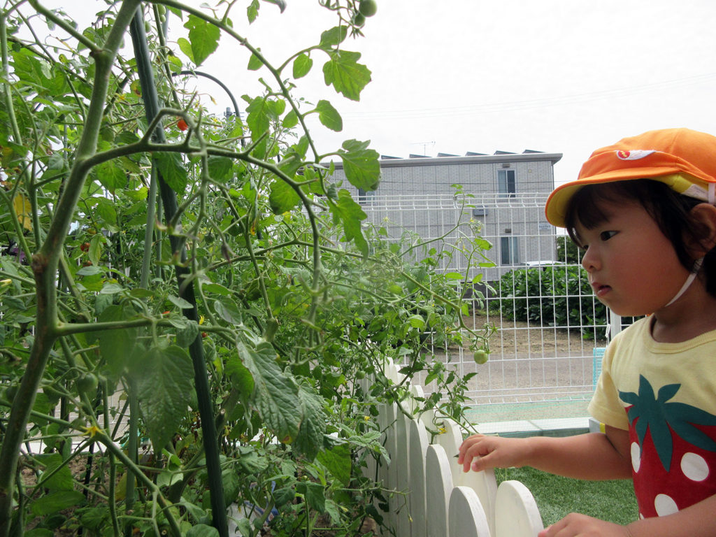 子ども達と一緒に水かけをし、成長を観察し、雑草やごみを取り、時々カエルや小さい虫たちと出会い、あっちこっち脱線しながら収穫し、そして食する。