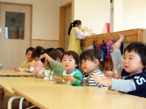 2018年10月24日 / 最終更新日 : 2018年10月26日 nakai みんなそろって。 みんな集まって朝のごあいさつです。 一人ひとり名前を呼ばれて、手を上げて大きな声でご返事。 元気いっぱい、一日の始まりでーす。