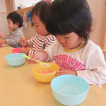 2018年10月12日 / 最終更新日 : 2018年10月19日 admin スプーンですくおう。 今日はスプーンの使い方を練習しました。 上向きに持つ子、下向きに持つ子、グーで持つ子、えんぴつ持ちができるよ […]